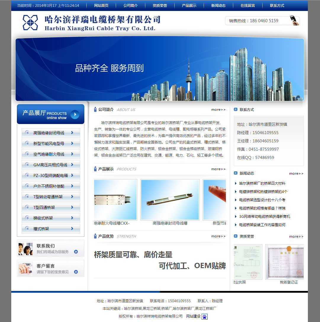 該案例完成于2014年2月,經(jīng)過(guò)前期調(diào)研溝通、界面設(shè)計(jì)、功能開(kāi)發(fā)與關(guān)鍵字分析優(yōu)化,總工期約10工作日,到3月間的一個(gè)月內(nèi),經(jīng)過(guò)我公司SEO技術(shù)專員的不斷優(yōu)化,在哈爾濱橋架、黑龍江橋架等關(guān)鍵詞都有了很大進(jìn)步,達(dá)到了百度搜索結(jié)果的首頁(yè)位置。