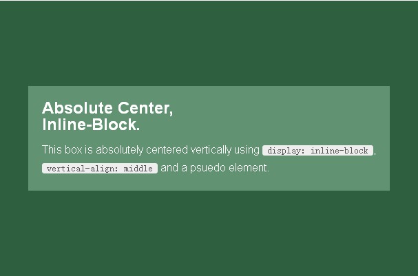 迫切需要的方法:inline-block法居中?;痉椒ㄊ鞘褂?nbsp;display: inline-block, vertical-align: middle樣式和偽元素讓內(nèi)容塊在容器中居中。我的實(shí)現(xiàn)用到了幾個(gè)在其他地方見不到的新技巧解決了一些問題。