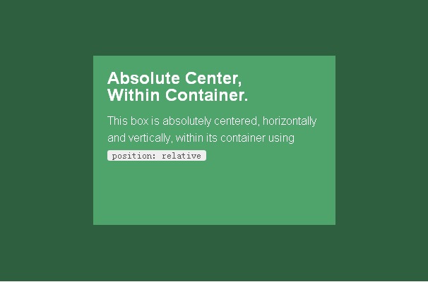 使用“完全居中”,就可以在一個(gè)設(shè)置了position: relative的容器中做到完全居中元素了! (居中例子,請前往英文原文查看)
