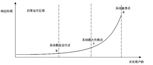在日常運行區(qū)間,可以獲得最好的用戶響應時間,隨著并發(fā)用戶數的增加,響應延遲越來越大,直到系統崩潰,用戶失去響應。