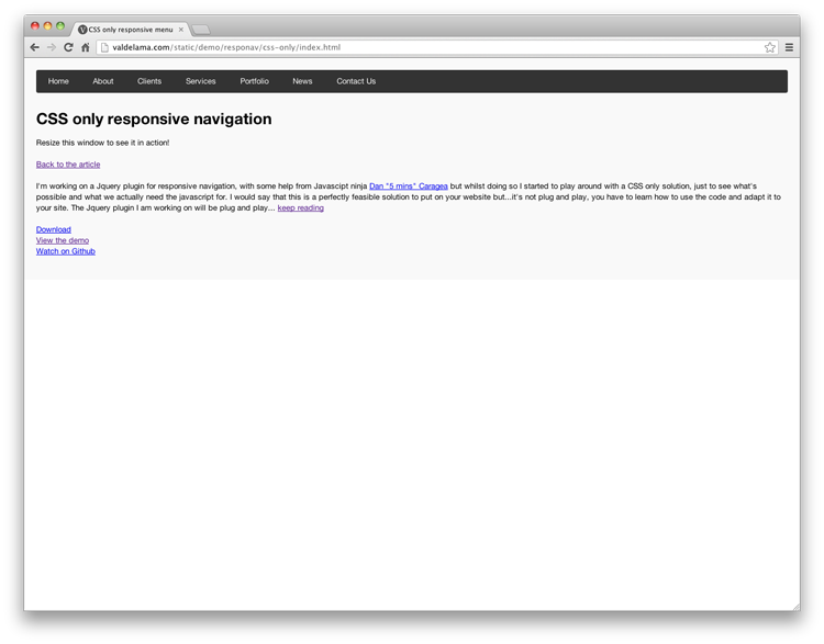響應式的布局,現(xiàn)在在網(wǎng)絡上很受歡迎,在我看來,這絕對是一件好事。這里是一個可下載和可重復使用的響應式 CSS 導航菜單。更多信息: http://valdelama.com/css-responsive-navigation