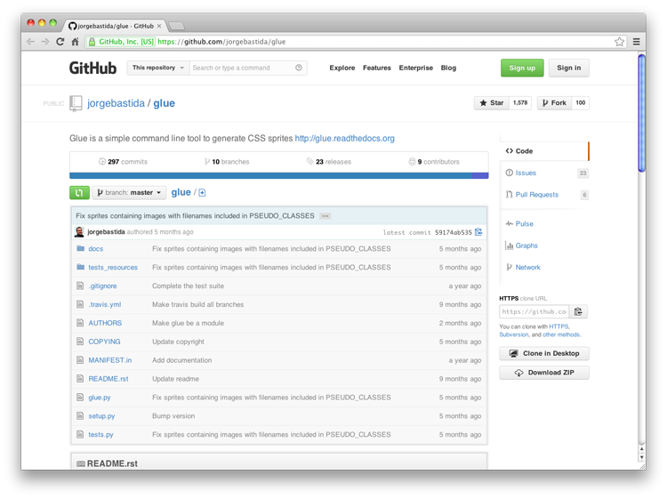 CSS 精靈技術是一種減少 HTTP 圖片請求的很好的方式。Glue 是一種簡單的命令行工具,轉變一組圖像到一個文件中,因此您可以輕松地在您的網(wǎng)站上使用 CSS 精靈技術,超有用!更多信息: https://github.com/jorgebastida/glue