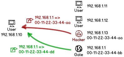 事實(shí)上,早期的系統(tǒng)還有個(gè)更嚴(yán)重的BUG:直接給用戶發(fā)送一個(gè) ARP 回復(fù)包,即使對(duì)方從沒(méi)請(qǐng)求過(guò),系統(tǒng)也會(huì)接受這個(gè)回復(fù),并提前保存里面的記錄。這種基于緩存的投毒,讓劫持成功率更上一層樓。