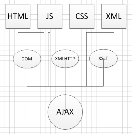 在AJAX中,XmlHttp用來(lái)在不改變頁(yè)面的情況下傳輸數(shù)據(jù),其中傳輸?shù)臄?shù)據(jù)即是XML,然后通過(guò)XSLT將其格式化,利用js通過(guò)dom對(duì)象將其顯示到HTML中,同時(shí)利用CSS確定數(shù)據(jù)的顯示及位置。