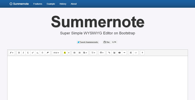 Summernote是一個建立在jQuery和Bootstrap之上的簡單,簡潔和靈活的所見即所得編輯器。同時支持Bootstrap的2個活躍版本(2和3),并為所有主要操作配備鍵盤快捷鍵。功能強(qiáng)大的API,提供了大量的自定義設(shè)計(jì)的選項(xiàng)(寬,高,活躍項(xiàng)......)和功能。