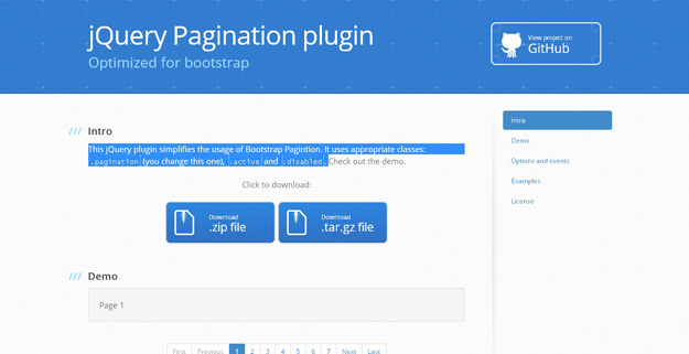 這個jQuery插件可以簡化Bootstrap分頁的使用。它使用相應(yīng)的類:.pagination(更改這個),.active 和 .disabled.