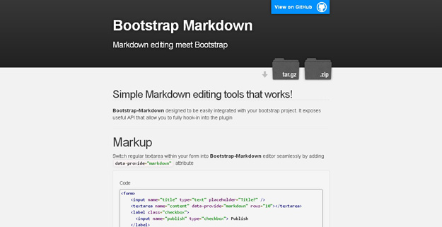 Simple Markdown作為編輯工具運(yùn)行。Bootstrap-Markdown的設(shè)計(jì)可以很容易地集成到你的bootstrap 項(xiàng)目。 它對外暴露了有用的API,可讓您完全沉浸于該插件。