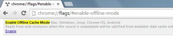 Google Chrome 現在增加了脫機模式,它允許你在沒有網絡連接的情況下打開網站。如果你在進行網絡開發(fā),想要用戶在沒有網絡的情況下也能打開網站,那么這無疑是一個很有用的功能。通過在瀏覽器地址欄輸入chrome://flags/#enable-offline-mode,啟用“激活離線緩存模式”可以開啟離線模式。