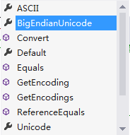 我在上一篇文章《你不知道的 頁(yè)面編碼,瀏覽器選擇編碼,get,post各種亂碼由來(lái)》中說(shuō)過(guò):“如何查看中文字符的十六進(jìn)制字符串?方法:BitConverter.ToString(System.Text.Encoding.UTF8.GetBytes(“阿道夫”));” 請(qǐng)注意我可以改為“System.Text.Encoding.Unicode.GetBytes” 如下圖是vs2013 Encoding鍵入“.”后的智能提示