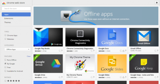 如今有好一些應用程序不需要網絡鏈接就能夠離線使用,比如 Gmail 郵箱、谷歌硬盤和谷歌日歷。這對那些不能使用網絡或經常出差工作的用戶來說是理想辦公工具。用戶可以從 Chrome 應用商店安裝離線擴展程序,并使用 Chrome 應用啟動器或 Chrome 瀏覽器來打開這些程序。