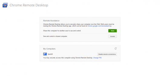 用戶可以通過 Chrome 瀏覽器安裝遠程桌面控制擴展應用,這個插件必須裝在每臺的 Chrome 瀏覽器上,點擊「分享」按鈕則會生成一個密碼與對方來共享桌面。在 Chrome 中打開一個新標簽頁,點擊該工具圖標,打開應用程序。點擊分享這臺電腦(Share this computer),接下來你可以選擇分享你的 email 地址、你分享的電腦,以及聊天記錄。每個遠程分享進程都會獲得一個唯一的授權碼。把這個授權碼發(fā)給你的好友,對方輸入該授權碼后便可以訪問你分享的內容。